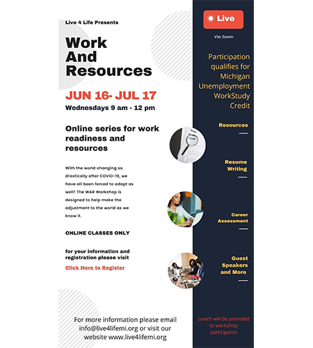 Live for Life continues to address HIV/AIDS Awareness throughout the City of Detroit as well as its neighboring cities within Michigan. All financial and In kind donations are welcomed and may be claimed as tax deductible. You may visit us on the web at: Live4Lifemi.org.We thank you for your interest and support.